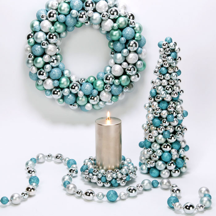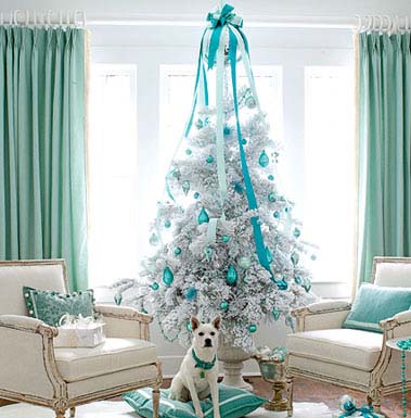 Първата е Тюркоаз и сребро-от нежни тюркоазени тонове до тъмни морско сини оттенъци-Тюркоаза превзема елхи,коледни гирлянди,топки,даже салфетките за празничната трапеза …Темата безспорно носи полъх на свежест,зима и красиви снежни отблясъци…